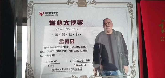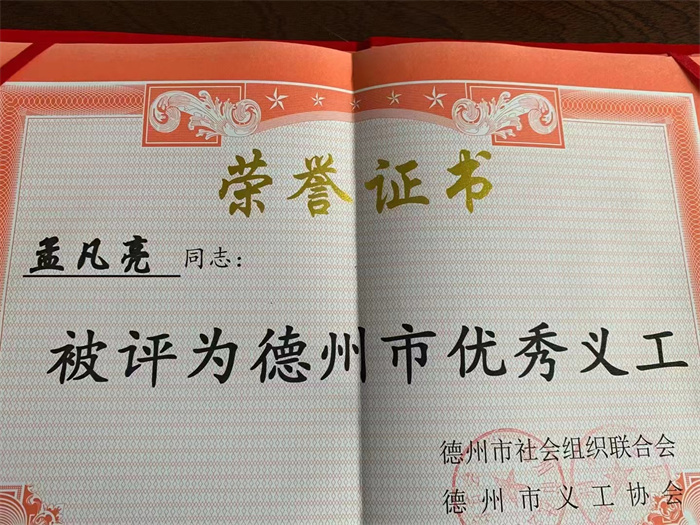 孟凡亮先生被評為德州市優(yōu)秀義工
