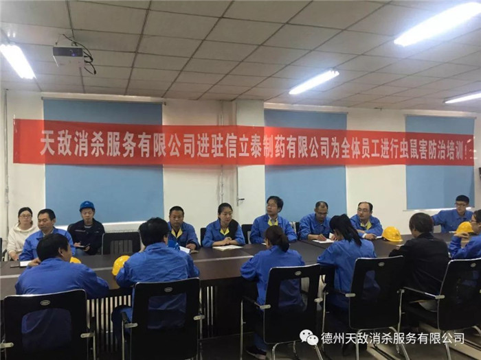 近日,天敵消殺服務(wù)有限公司進(jìn)駐信立泰制藥有限公司為各部門負(fù)責(zé)人進(jìn)行蟲害防治培訓(xùn)。